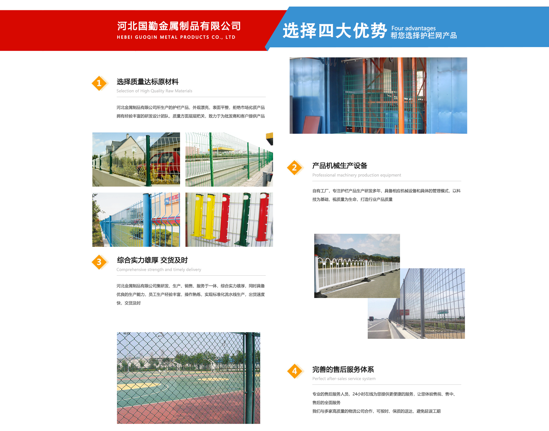 - 熱門關鍵詞: 小區圍欄(鋅鋼護欄) 桃型柱護欄網 雙邊絲護欄網 刺繩護欄網 車間隔離網 養殖隔離網(荷蘭網)(牛欄網) 監獄、機場防護網 高速、橋梁防拋網 基坑護欄 封路拒馬護欄 市政道路施工圍擋 道路中央護欄 鋅鋼草坪護欄 U型鋅鋼草坪護欄 仿竹護欄